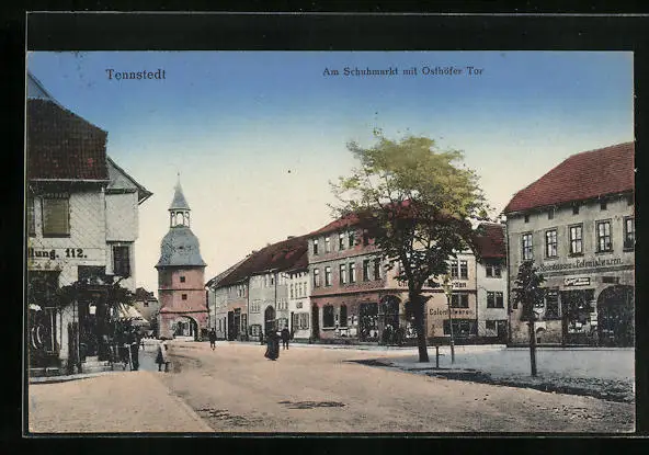 AK Tennstedt, Strassenpartie am Schuhmarkt mit Osthöfer Tor