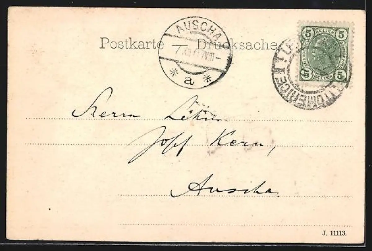 alte Ansichtskarte, gelaufen 1907, Bugspur re. oben, guter Zustand