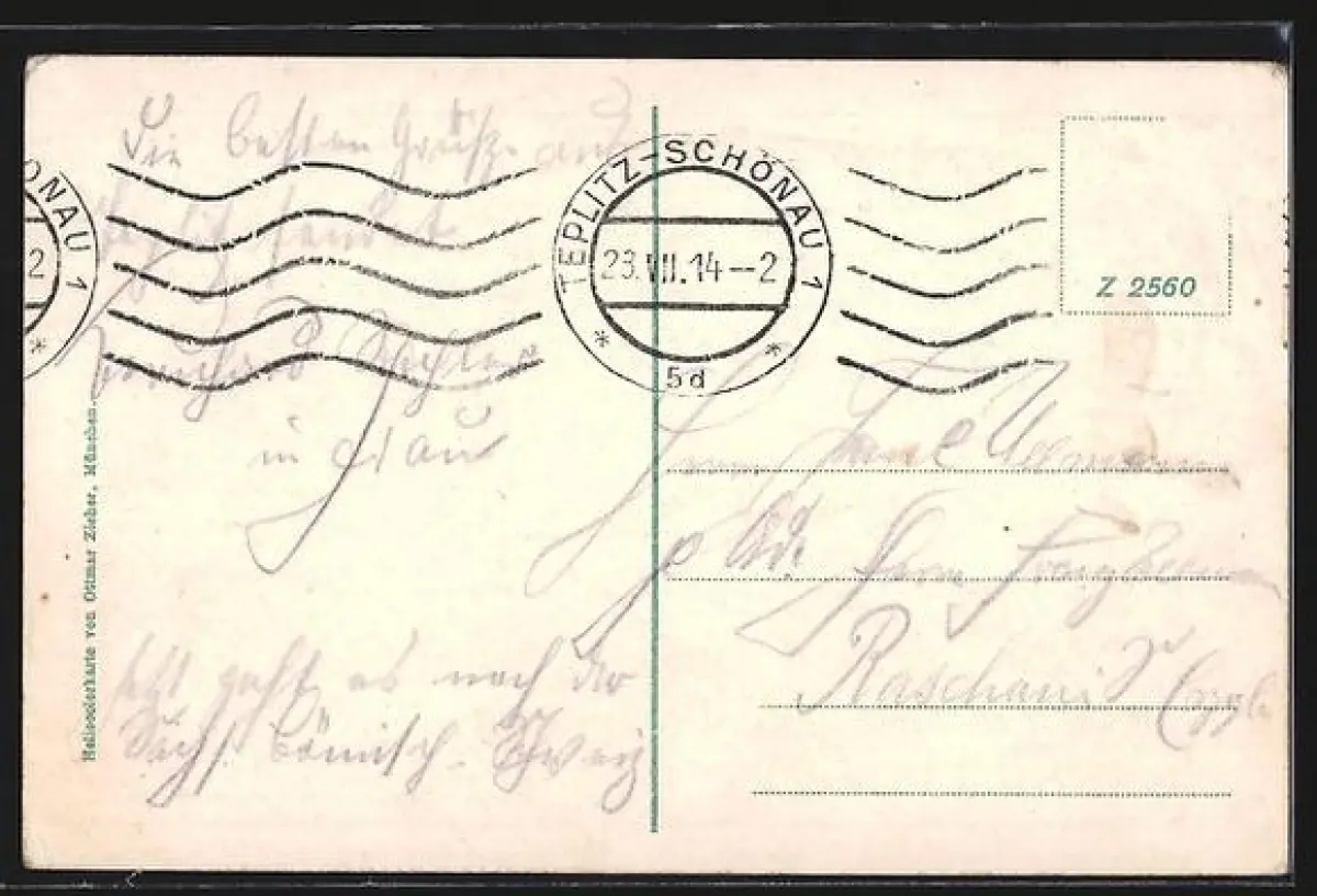 alte Ansichtskarte, gelaufen 1914, Briefmarke entfernt, rückseitig Oberflächenschaden, Eckknick re. unten, guter Zustand