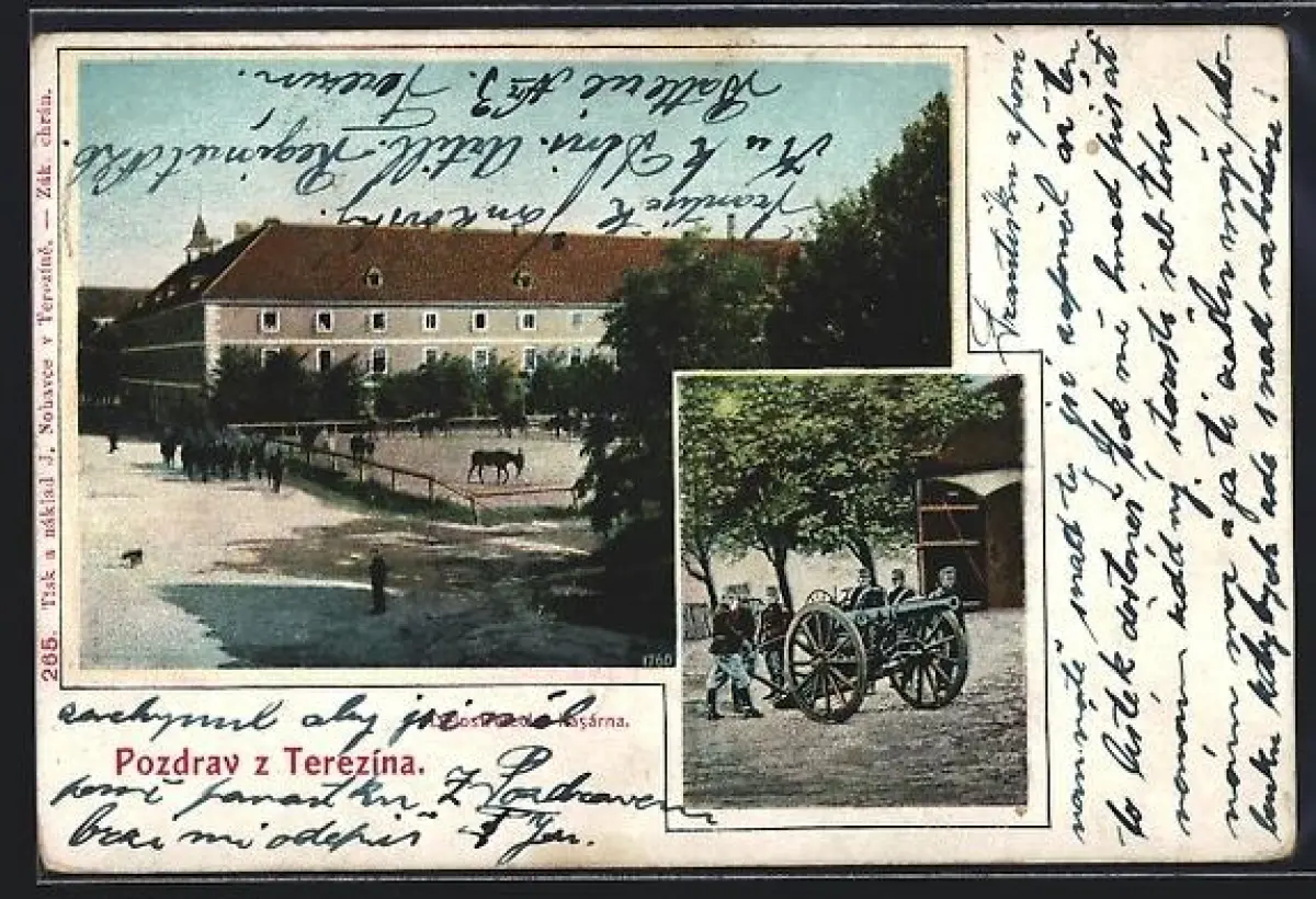 AK Terezin, Kaserne, Soldaten mit Geschütz