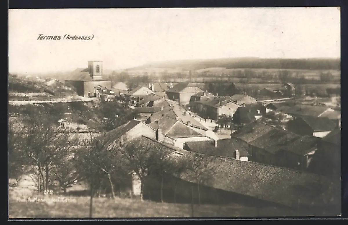 AK Termes /Ardennes, Vue aérienne du village et de l`église entourés de paysages champêtres