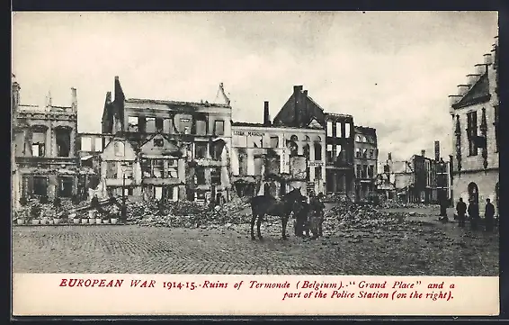 AK Termonde, Ruins 1914-15, Grand Place and a part of the Police Station