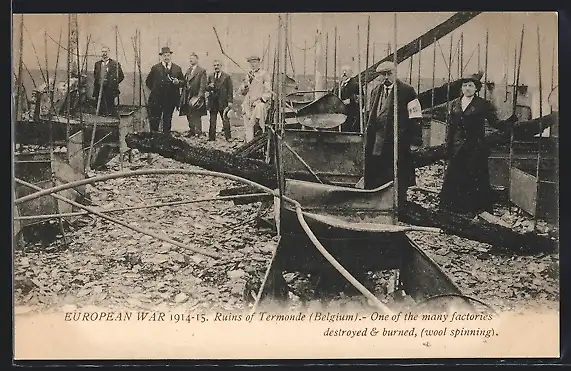 AK Termonde, Ruins of wool spinning factory, European War 1914-15