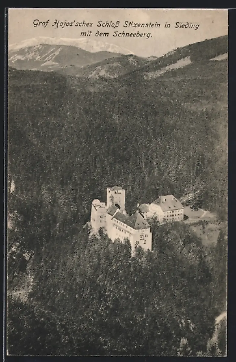 AK Ternitz /N.-Oe., Graf Hojos`sches Schloss Stixenstein mit dem Schneeberg