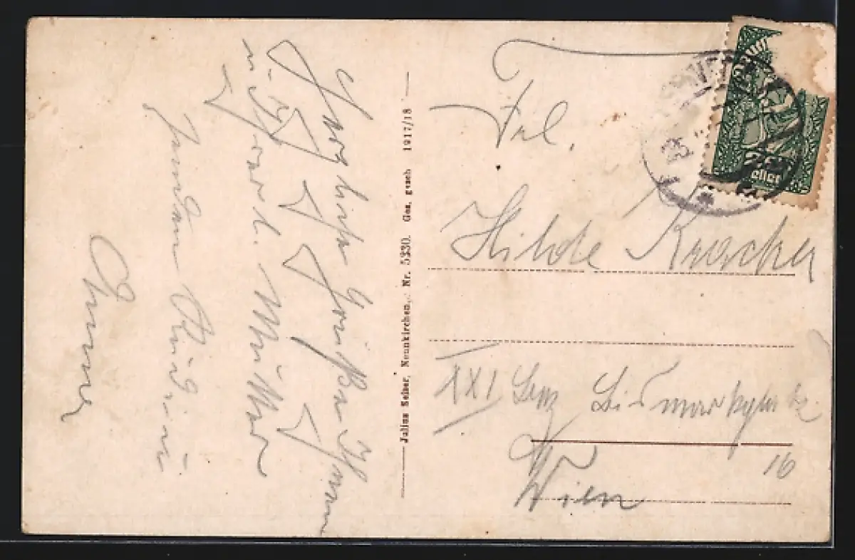 alte Ansichtskarte, gelaufen, Briefmarke entfernt, rückseitig Oberflächenschaden, Eckknick re. oben, guter Zustand