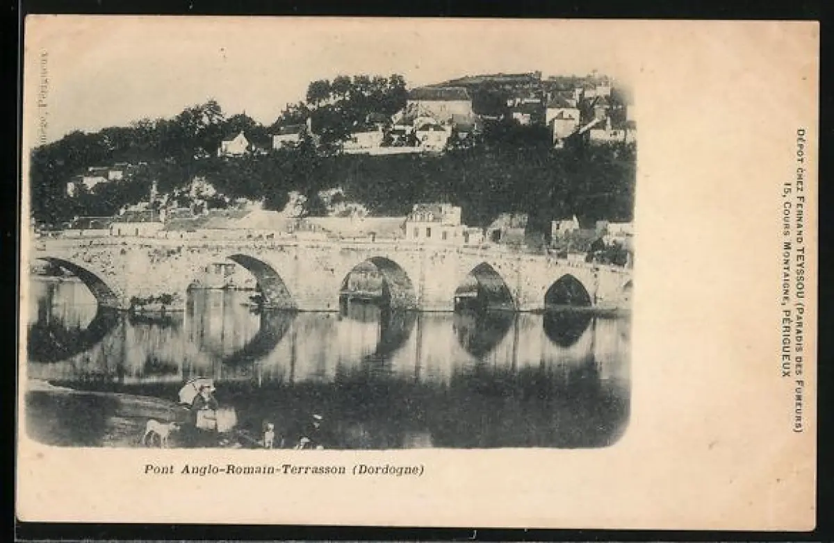 AK Terrasson /Dordogne, Pont Anglo-Romain et vue sur la rivière et les collines environnantes