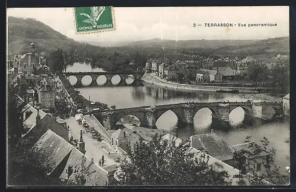 AK Terrasson, Vue panoramique sur les ponts et la rivière