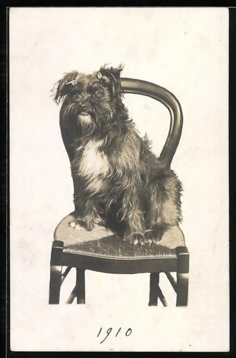 AK Terrier auf einem Stuhl, Portrait