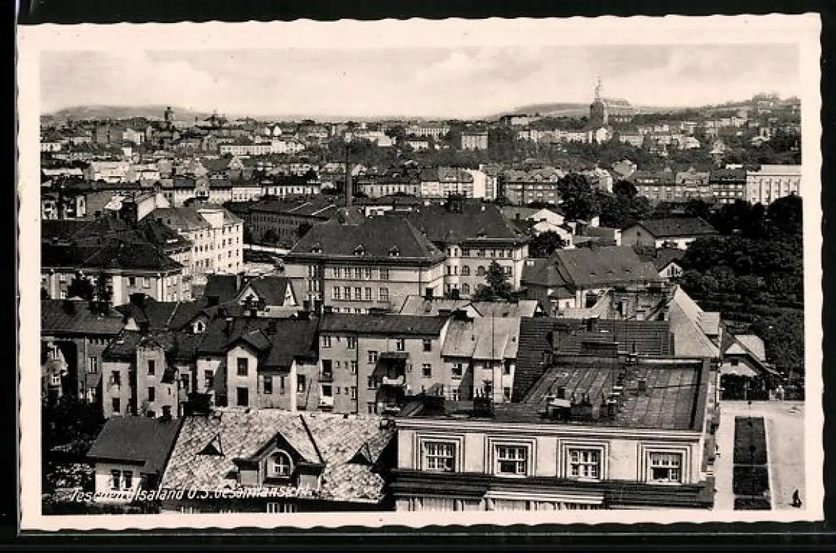 AK Teschen /O.S., Gesamtansicht mit Anlage aus der Vogelschau