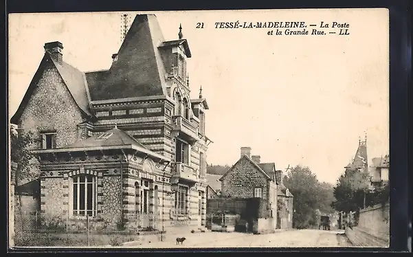 AK Tessé-la-Madeleine, La Poste et la Grande Rue