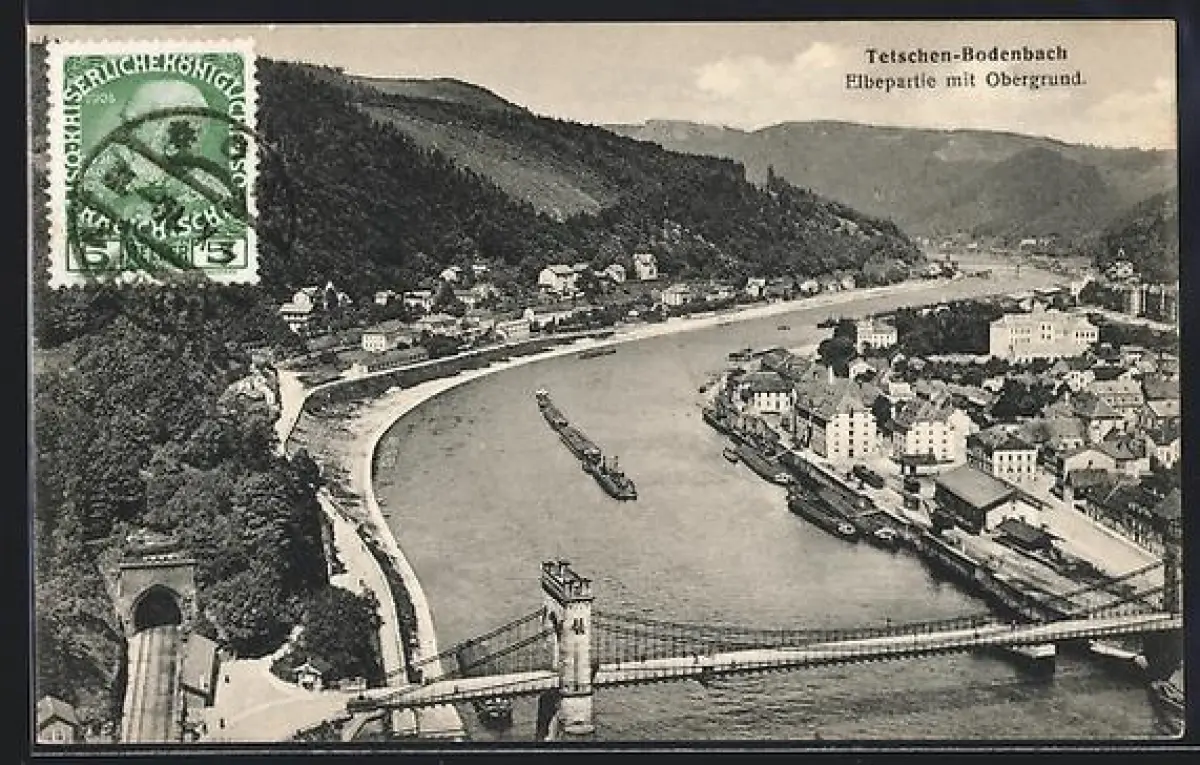 AK Tetschen-Bodenbach, Elbepartie mit Obergrund
