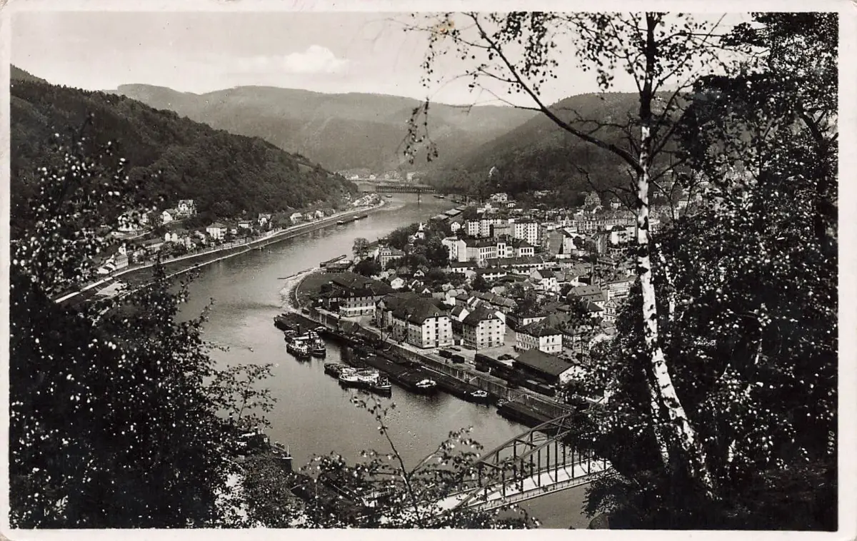AK Tetschen Bodenbach Stadtansicht Elbe Schiffe Böhmen ungelaufen Postkarte