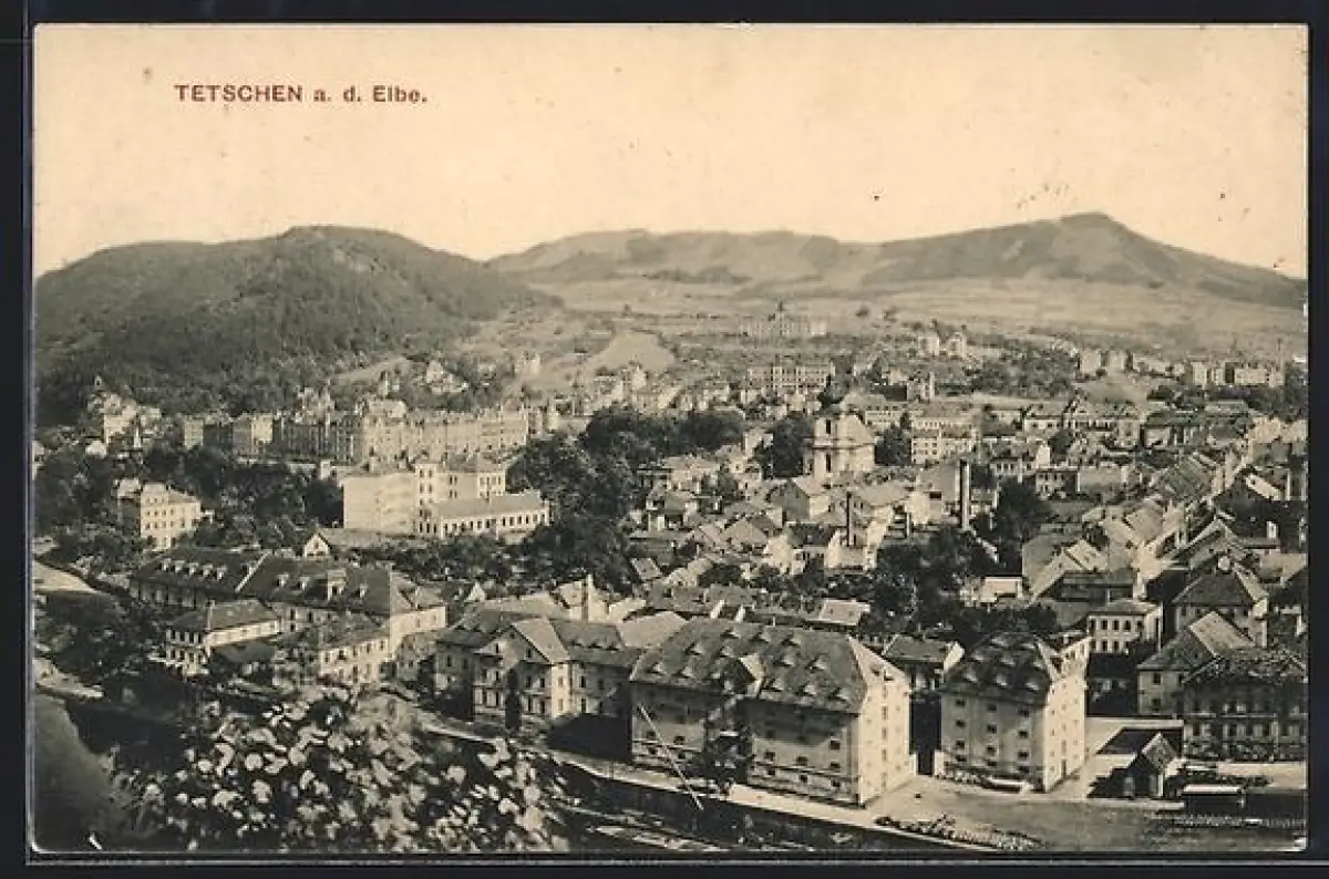 AK Tetschen a. d. Elbe, Teilansicht mit Kirche