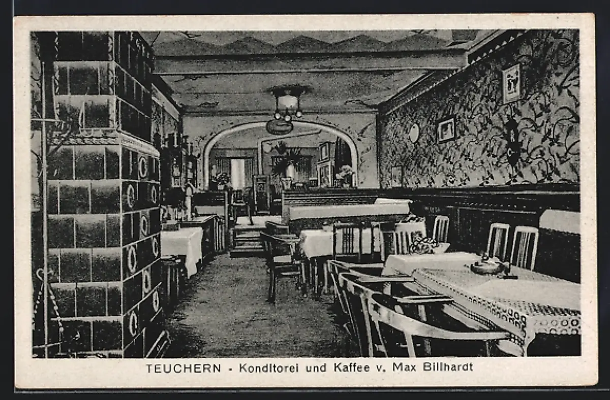 AK Teuchern, Konditorei und Cafe von Max Billhardt, Innenansicht