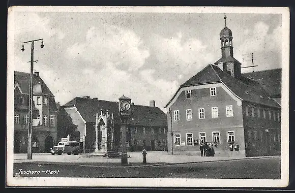 AK Teuchern, Rathaus am Markt mit Denkmal