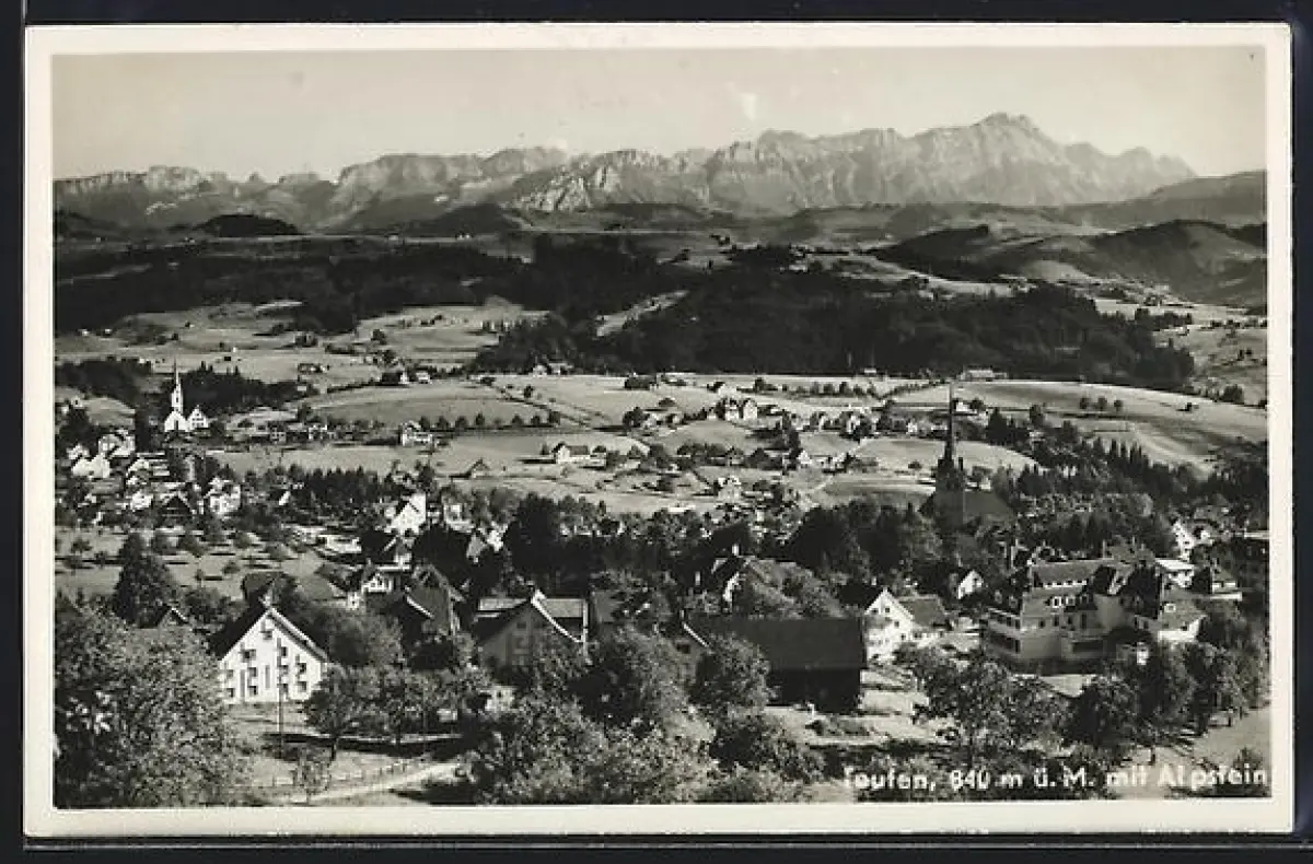 AK Teufen /AR, Totalansicht mit Alpstein aus der Vogelschau
