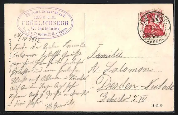 alte Ansichtskarte, gelaufen 1912, guter Zustand
