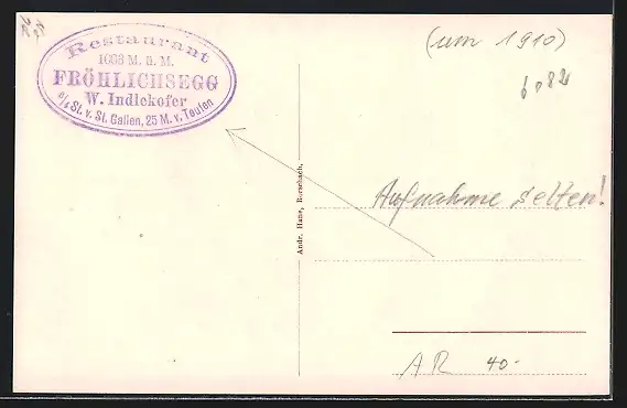 AK Teufen, Fröhlichsegg, Restaurant von W. Indlekofer
