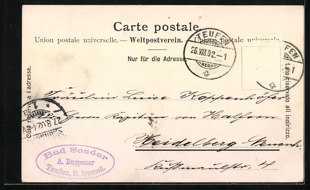 gelaufen 1902, Briefmarke entfernt, guter Zustand