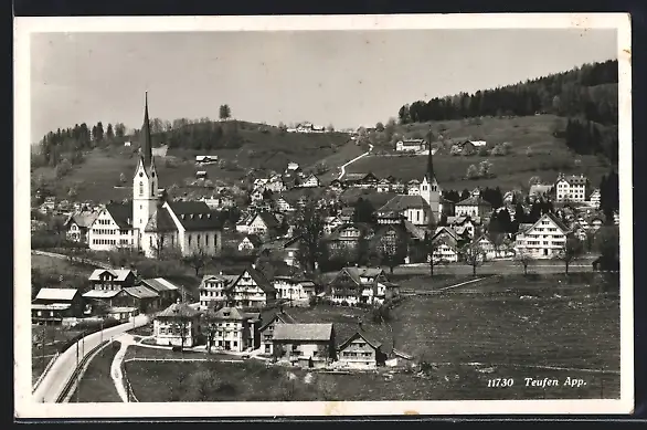 AK Teufen, Ortsansicht mit Kirche und Umgebung