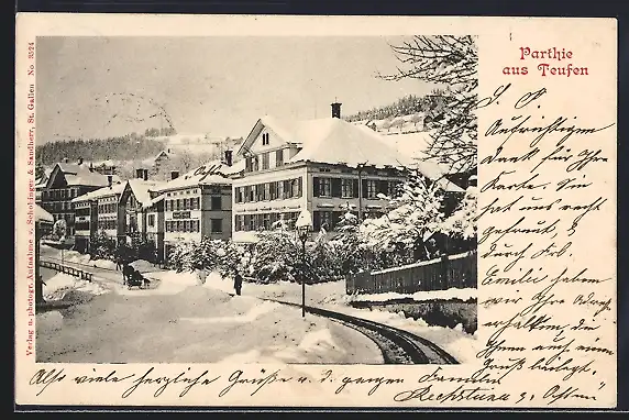 AK Teufen, Ortspartie mit Pferdeschlitten im Winter