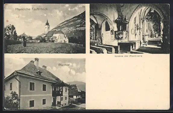 AK Teufenbach /Stmk., Pfarrkirche, Pfarrhof, Inneres der Kirche