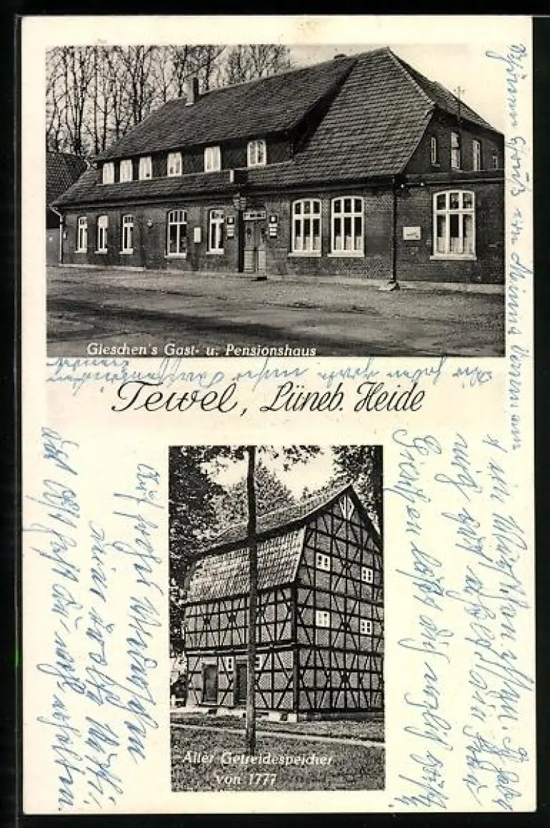 AK Tewel /Lüneb. Heide, Gieschens Gast- und Pensionshaus, Alter Getreidespeicher
