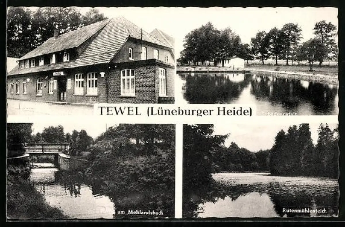 AK Tewel /Lüneburger Heide, Badeanstalt, Gasthaus-Pension Gieschen