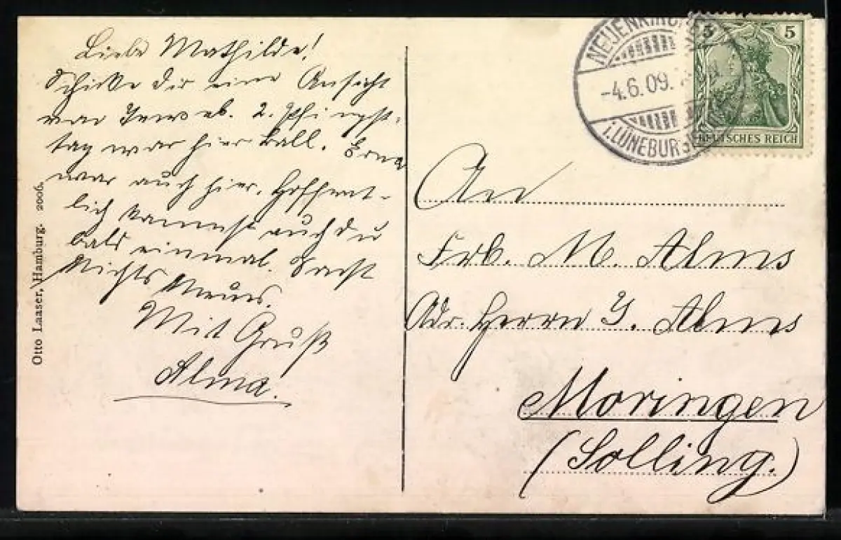 alte Ansichtskarte, gelaufen 1909, guter Zustand