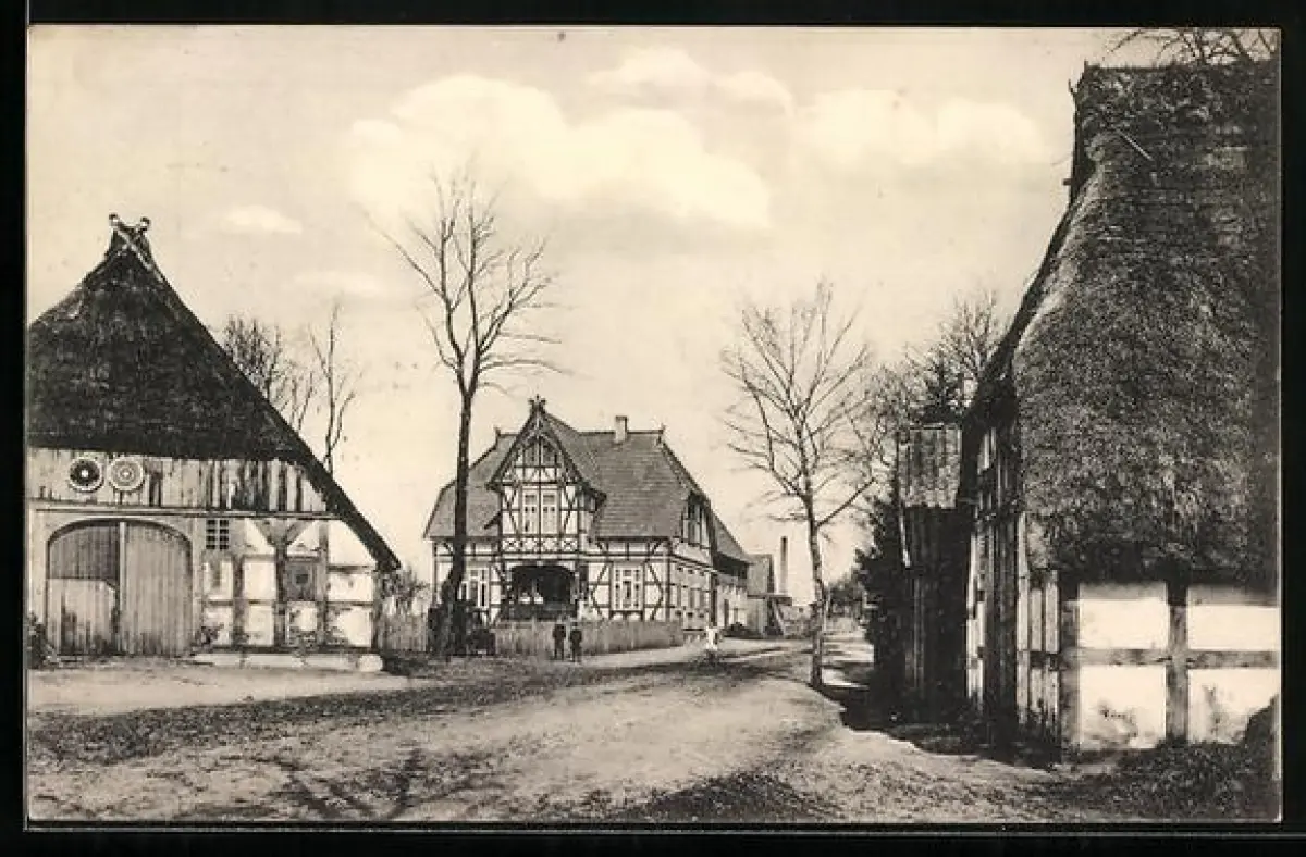 AK Tewel im Lüneburgischen, Strassenpartie mit Fachwerkhäusern