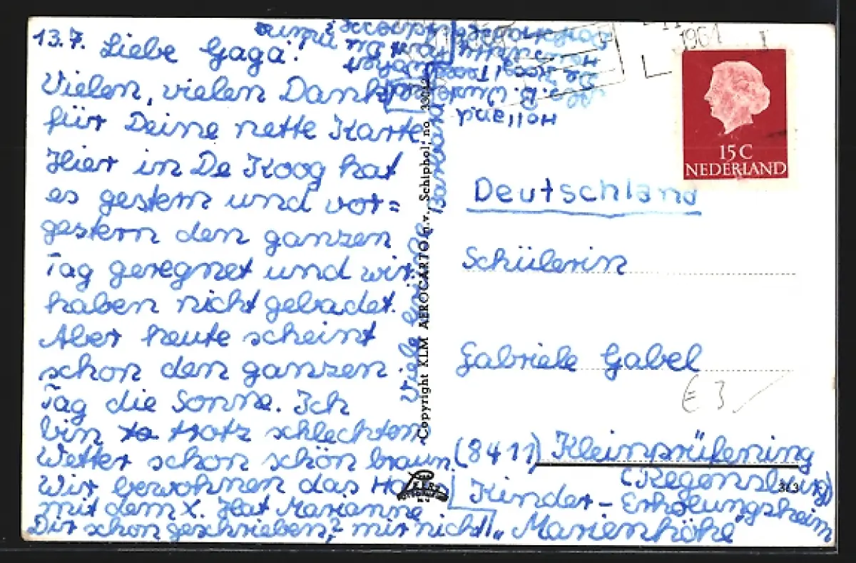 gelaufen 1964, Eckknick links unten, guter Zustand