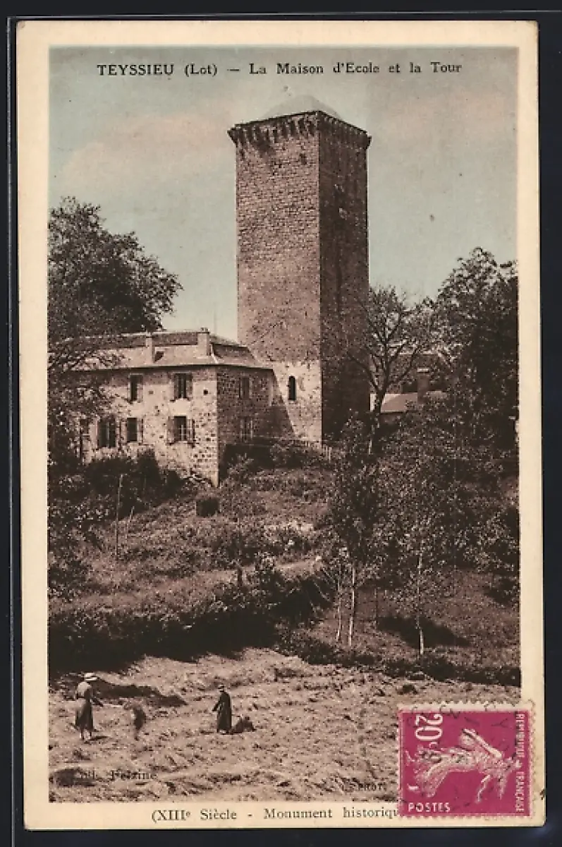 AK Teyssieu /Lot, La Maison d`Ecole et la Tour, Monument historique du XIIIe siècle