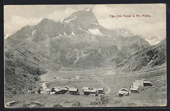 AK Tga, Ortsansicht mit Val Faller und Piz Platta