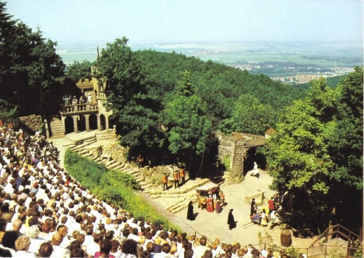 Ansichtskarte Thale Harz Kr. Quedlinburg Harzer Bergtheater, belebt Erhaltung I-II ungelaufen, um 1991 Verlag: Bild und Heimat, Reichenbach i. V. - 01 08 0510/13