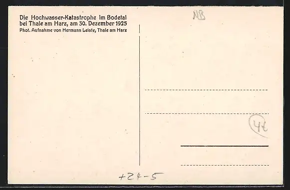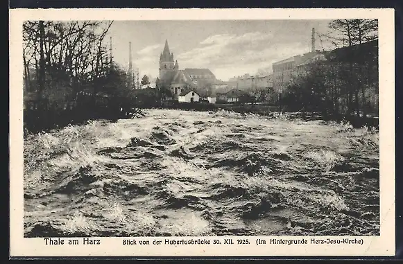 AK Thale am Harz, Blick von der Hubertusbrücke, Hochwasser-Katastrophe 30.12.1925, im Hintergrund Herz-Jesu-Kirche
