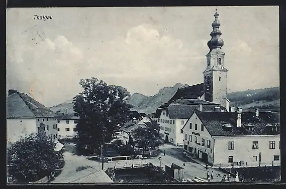 AK Thalgau, Ortspartie im Zentrum mit Kirche
