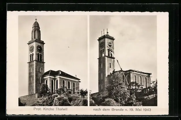 AK Thalwil, Prot. Kirche nach dem Brande v. 19. Mai 1943