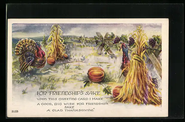 AK Thanksgiving, Truthähne auf einem Maisfeld, For Friendship`s Sake
