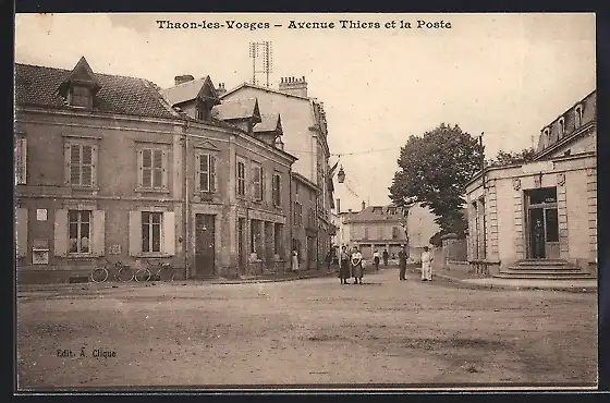 AK Thaon-les-Vosges, Avenue Thiers et la Poste
