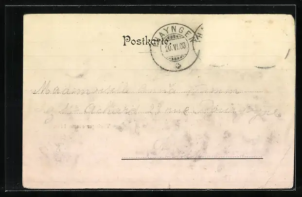 alte Ansichtskarte, gelaufen 1900, Briefmarke entfernt, rückseitig Oberflächenschaden, Eckknick unten li., guter Zustand