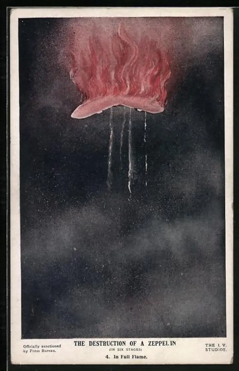 AK The Destruction of a Zeppelin, In Full Flame, brennender Zeppelin