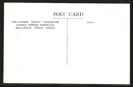 AK The Hawker Henley Monoplane in flight, Eindecker-Flugzeug
