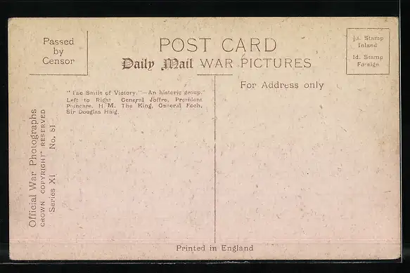 AK The King at the Front, Der König von England mit französischen Heerführern