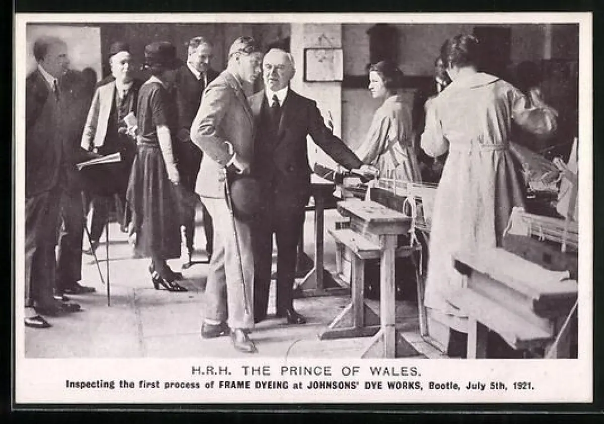AK The Prince of Wales, Inspecting the first of Frame Dyeing at Johnson's Dye Works 1921