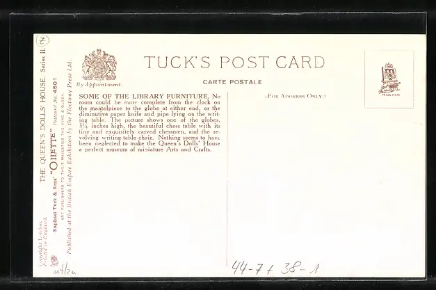 AK The Queen`s Dolls` House, Some of the Library Furniture, Globus, Schachbrett und Stuhl
