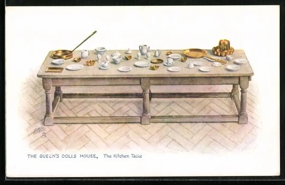 AK The Queen`s Dolls` House, The Kitchen Table, Puppenhaus, Möbel