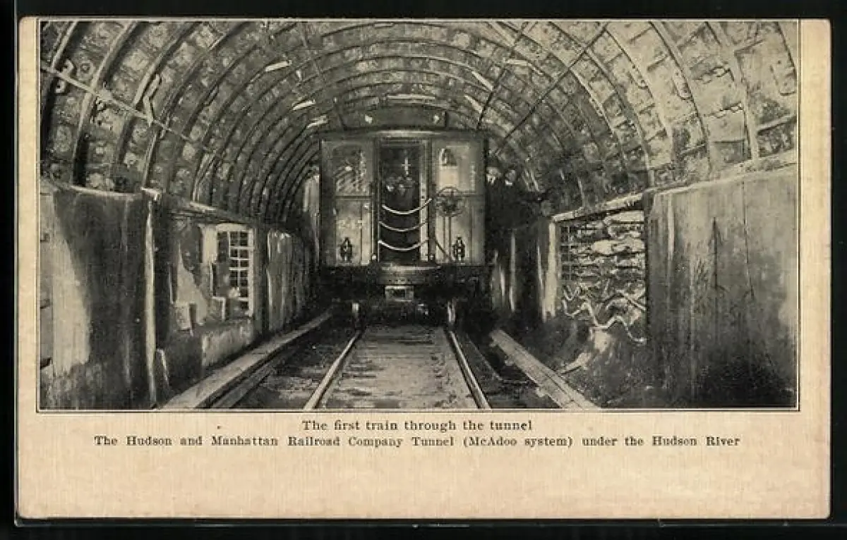 AK The first train through the tunnel, Hudson and Manhattan Railroad Company Tunnel under the Hudson River, U-Bahn