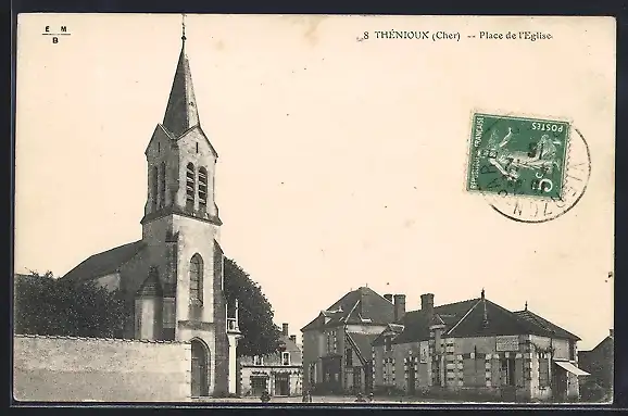AK Thénoux, Place de l`Église avec l`église et bâtiments adjacents