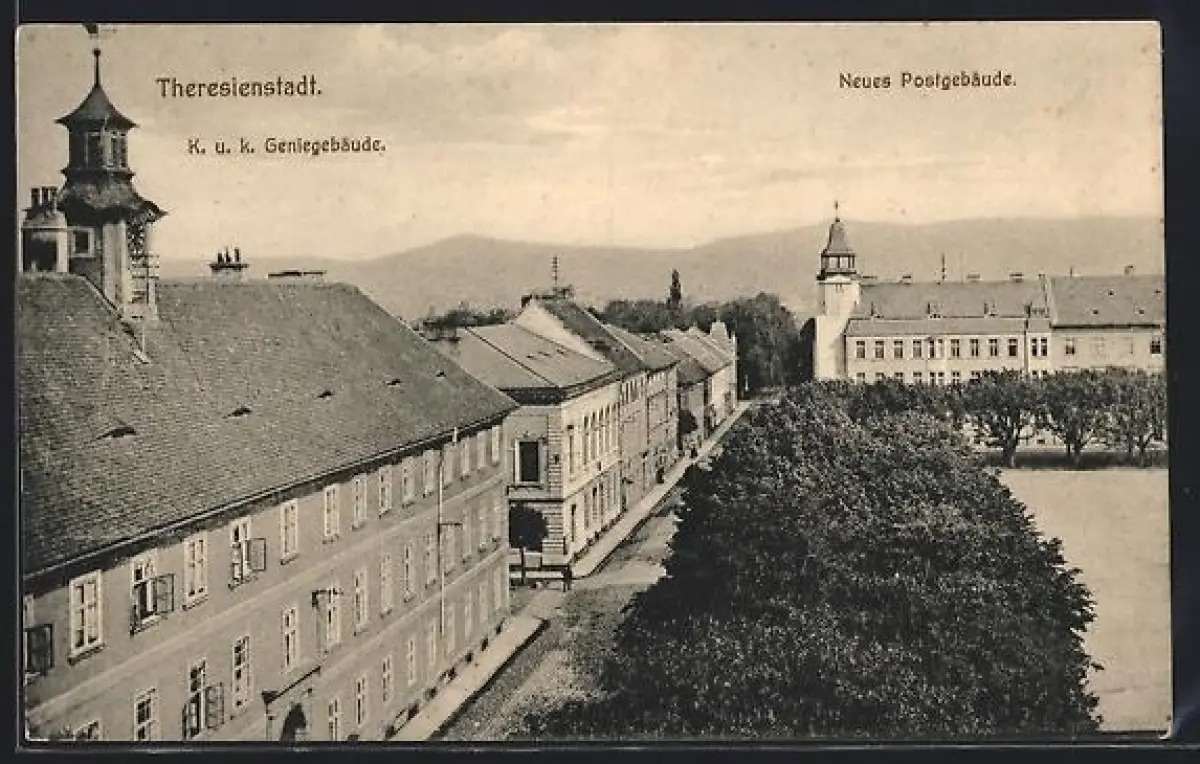 AK Theresienstadt / Terezin, Neues Postgebäude und Geniegebäude