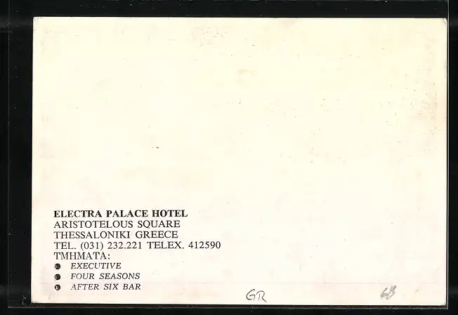 AK Thessaloniki, Electra Palace Hotel, with interior views, Aristotelous Square